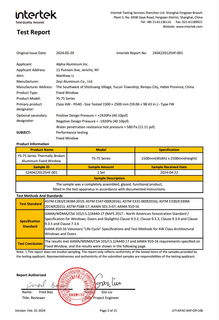 We are qualified with I S O 9 0 0 1, NAFS–17, NFRC certificate. Our high-end system doors and windows with independent brands have been exported to markets such as the United States and Canada, and have successfully obtained reports and certificates from authoritative testing institutions in the United States, and have been highly recognized by the local market.