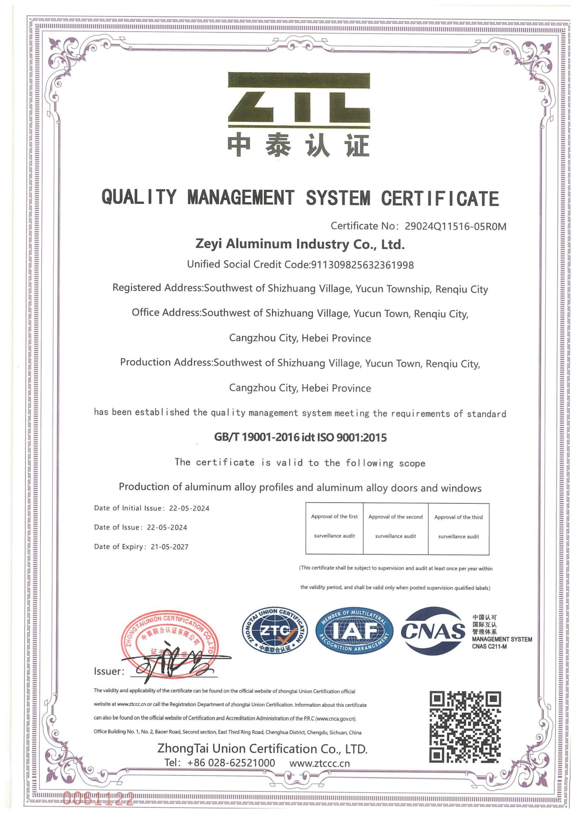 Zeyi Aluminum Co., Ltd. is a professional aluminum extrusion profile and aluminum window and door factory, it was established in 2003, We are located in Hebei Province, Ren’qiu City, 150 kilometers from Beijing. Our Company has more than 300 employees including 50 professional and technical engineers and covers an area of more than 30,000 square meters.